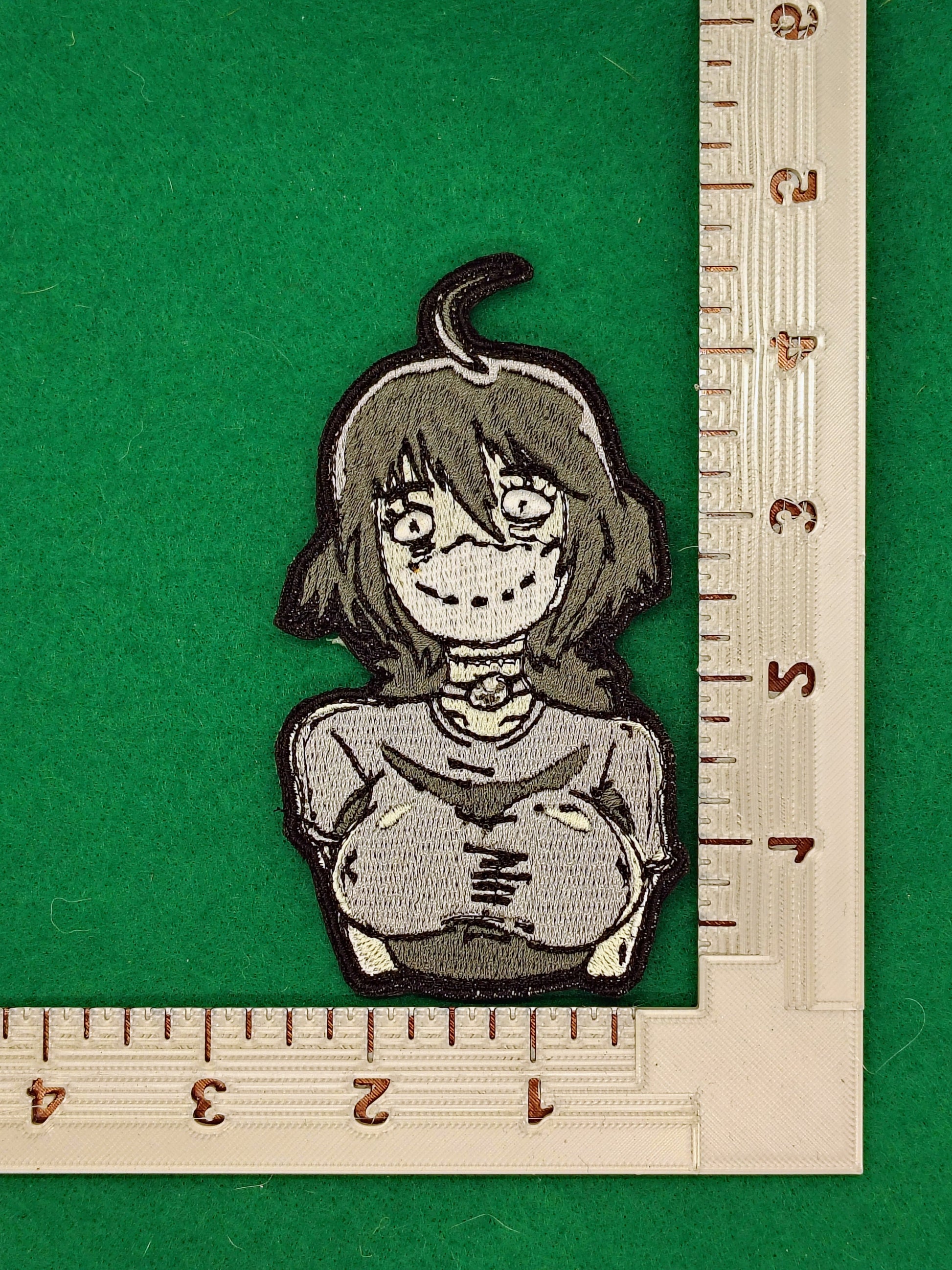 Creepy-cute and stitched together with attitude. This spooky waifu sports a stitched smile and a chaotic charm that’s perfect for Halloween vibes—or anytime you want a little horror with your humor. Available in hook-and-loop or iron-on backing, ready to haunt your jacket, bag, or gear.