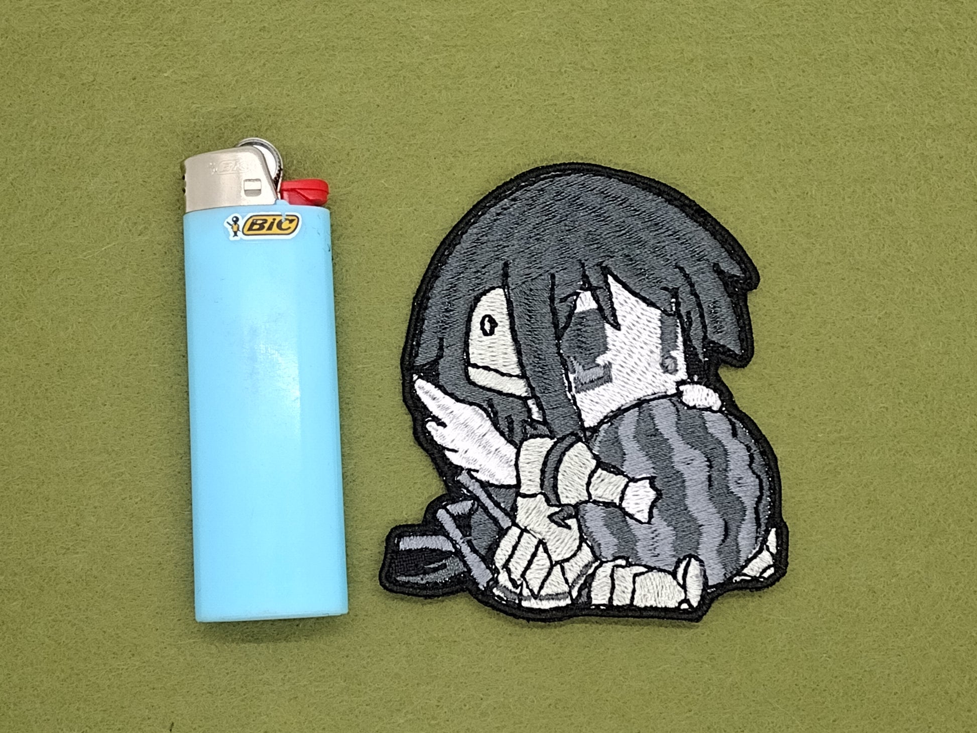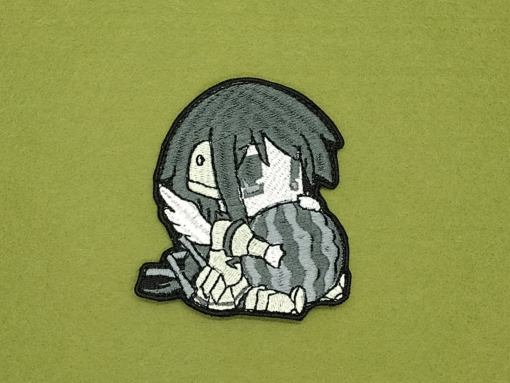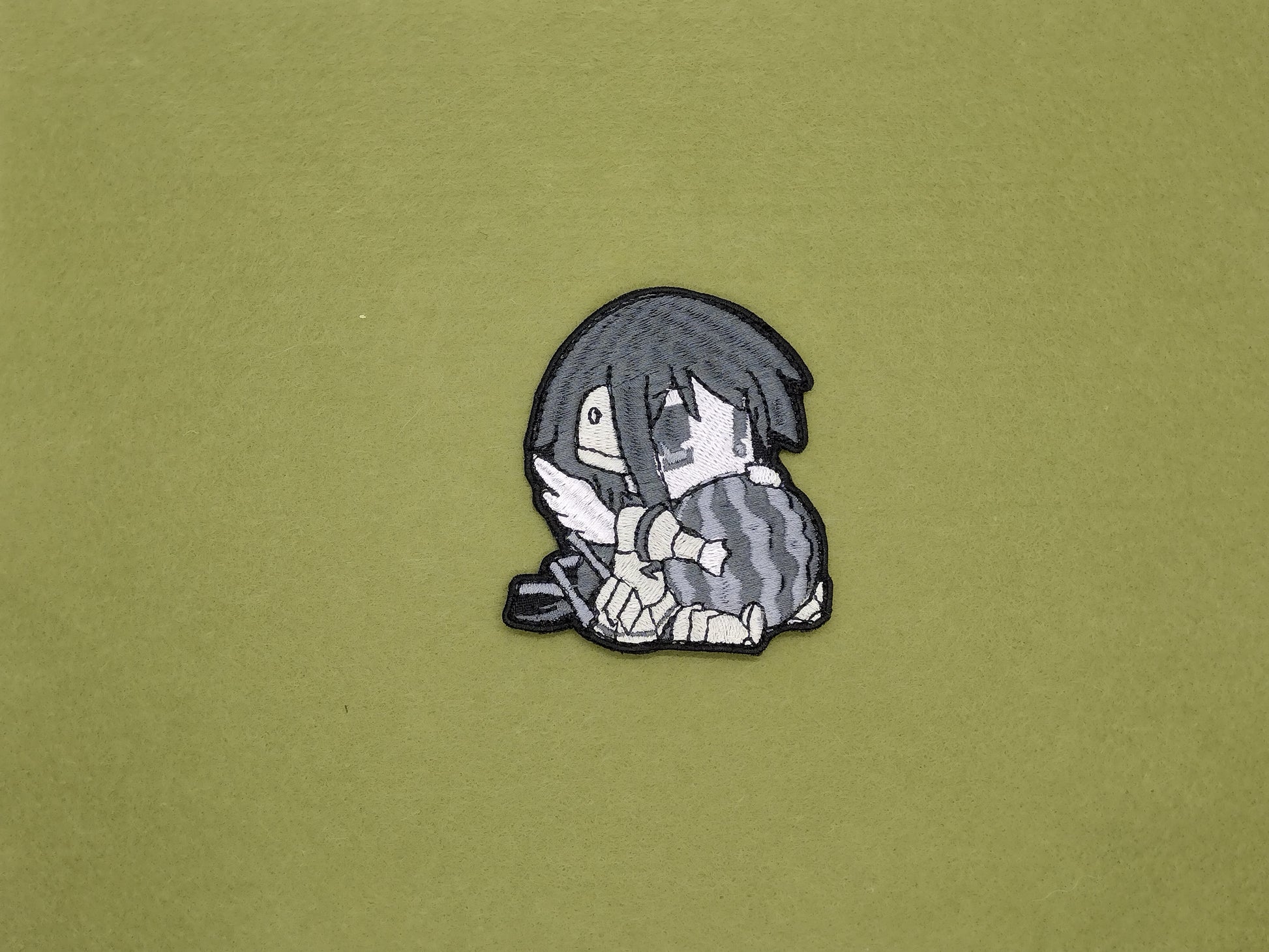 Add a splash of watermelon sweetness to your day with Ikaros and her melon! This quirky, embroidered patch of the chibi character looks great on your bag, jacket, or any piece of clothing for a fun statement. Make summer last all year round!