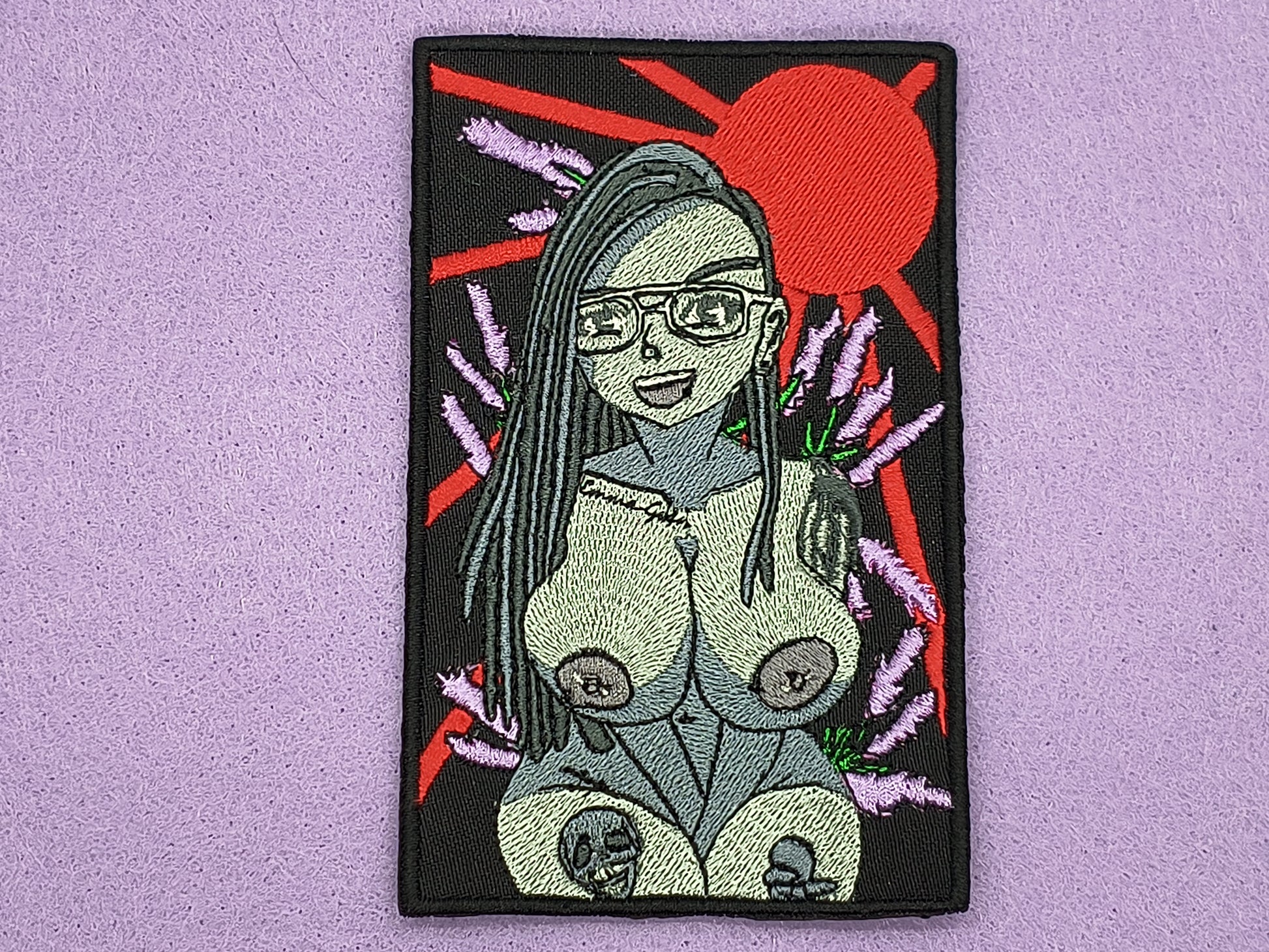 Get some playful, quirky charm with the Busty Bunny Waifu patch. Featuring a beautiful embroidered design and revealing topless look, this playful patch is perfect for those who don't take themselves too seriously. With added piercings, this is a must-have for any quirky wardrobe.