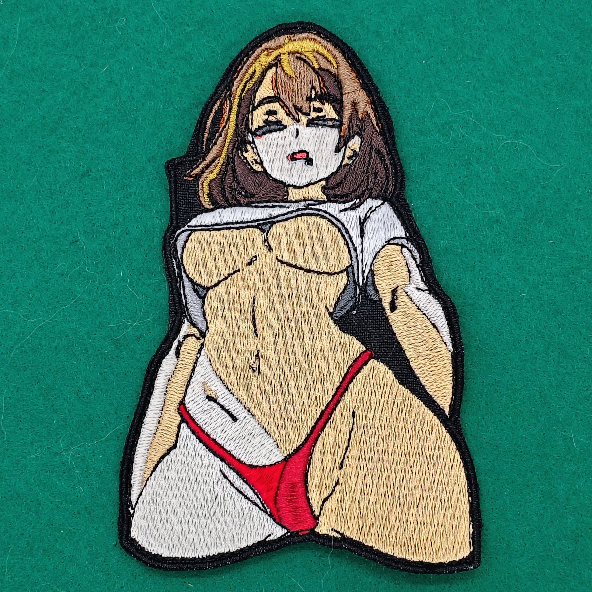 "Capture the cuteness and lewdness of your waifu with Sleepy Waifu Selfie! This anime patch is perfect for hooking and looping onto any garment. Show off your love for anime with this sexy and playful iron on.